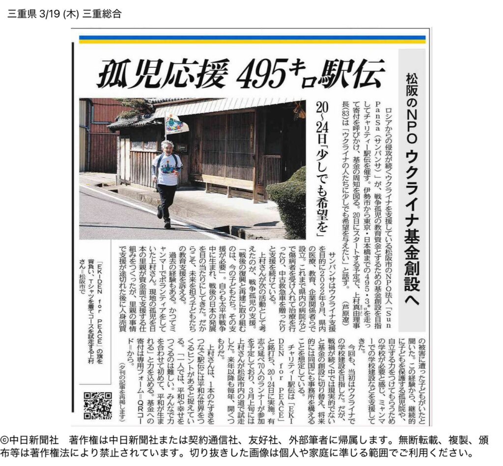 「EKIDEN for PEACE」の記事が中日新聞に掲載されました
